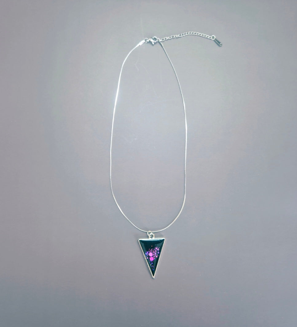 🔹 Triangelformad hänge i resin med galaxinspirerat motiv
